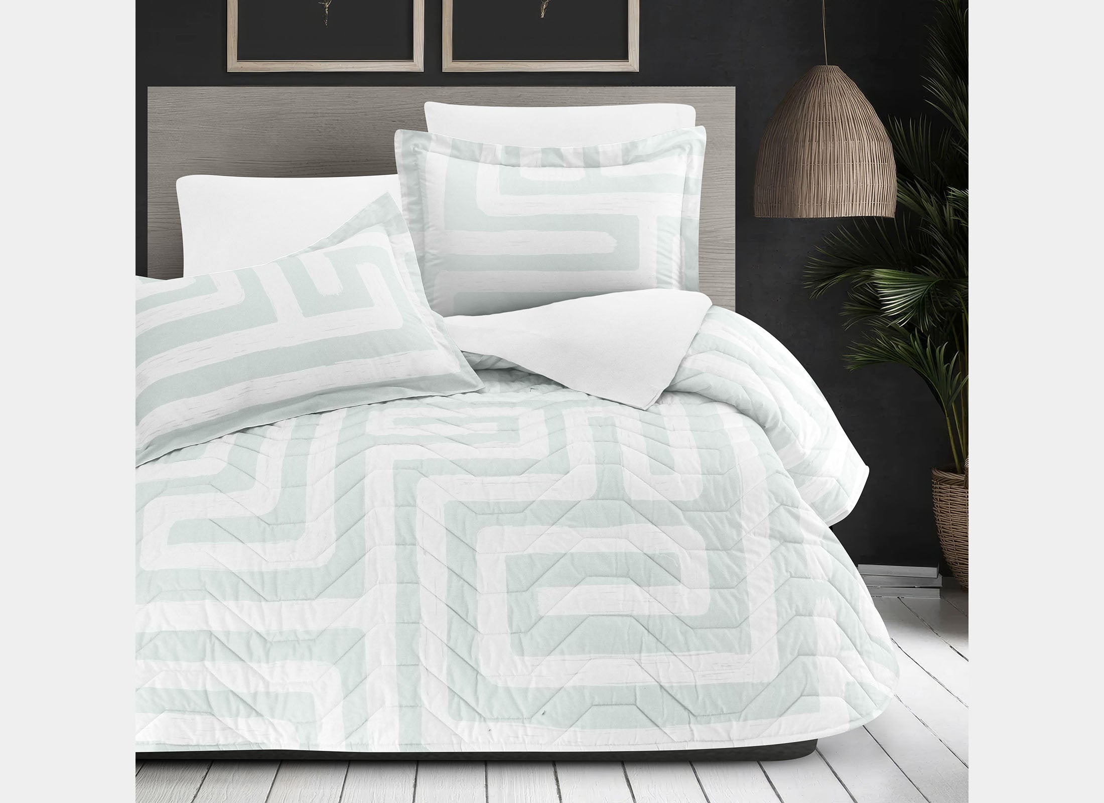 Coordinado Pisani Menta | Colcha y Fundas decorativas | 100% Algodón