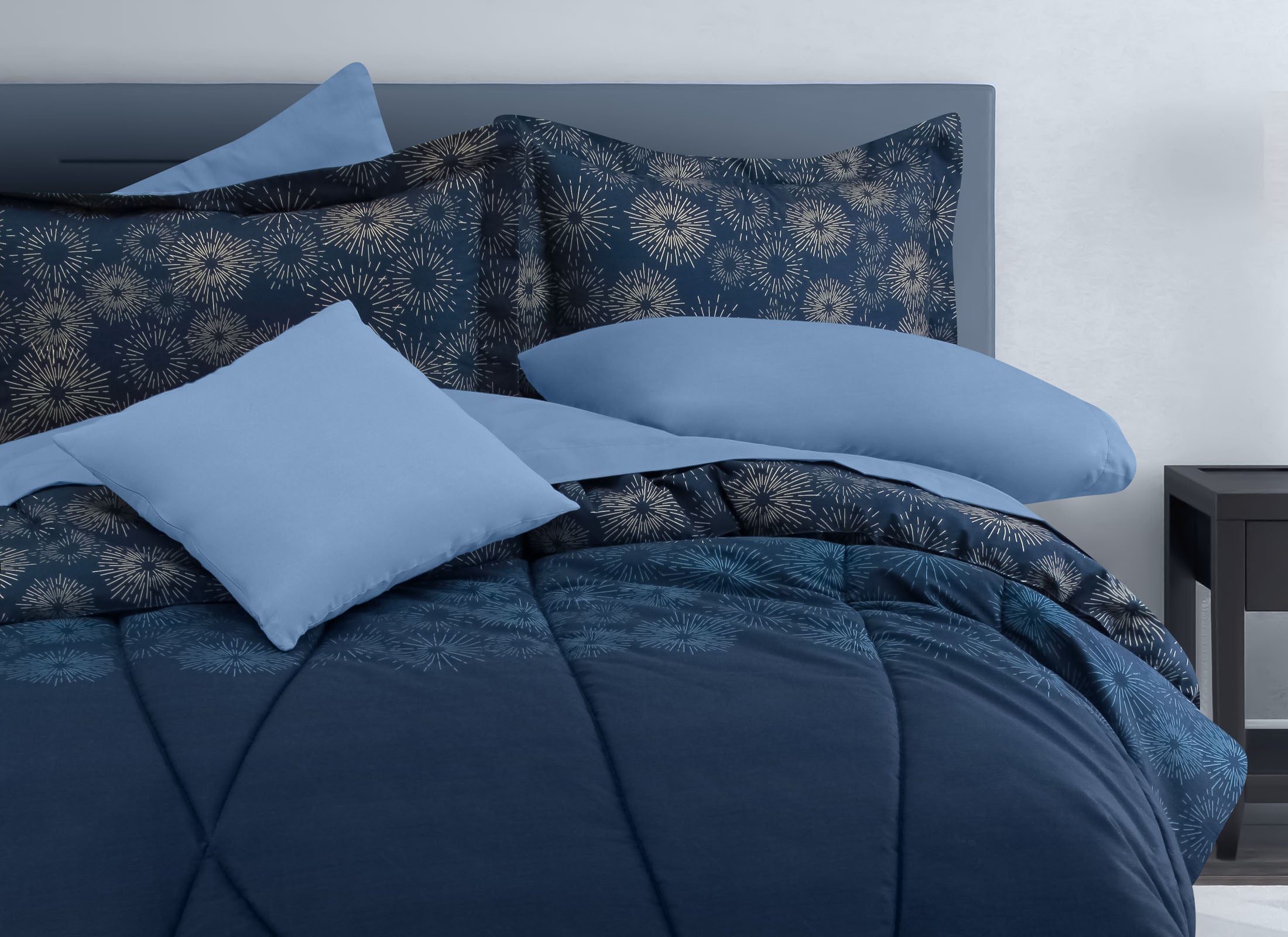 Un estallido de elegancia y misterio: los fuegos artificiales en tonos beige oscuro y azul verdoso iluminan el fondo azul profundo, creando una escena que evoca la magia de una noche estrellada. Cada explosión de color es un homenaje a la belleza efímera de la celebración, mientras que el contraste entre el azul oscuro y los tonos suaves aporta un equilibrio perfecto entre energía y serenidad. Este estampado transforma cualquier espacio en un refugio lleno de sofisticación, donde la emoción y la calma coexisten en armonía.