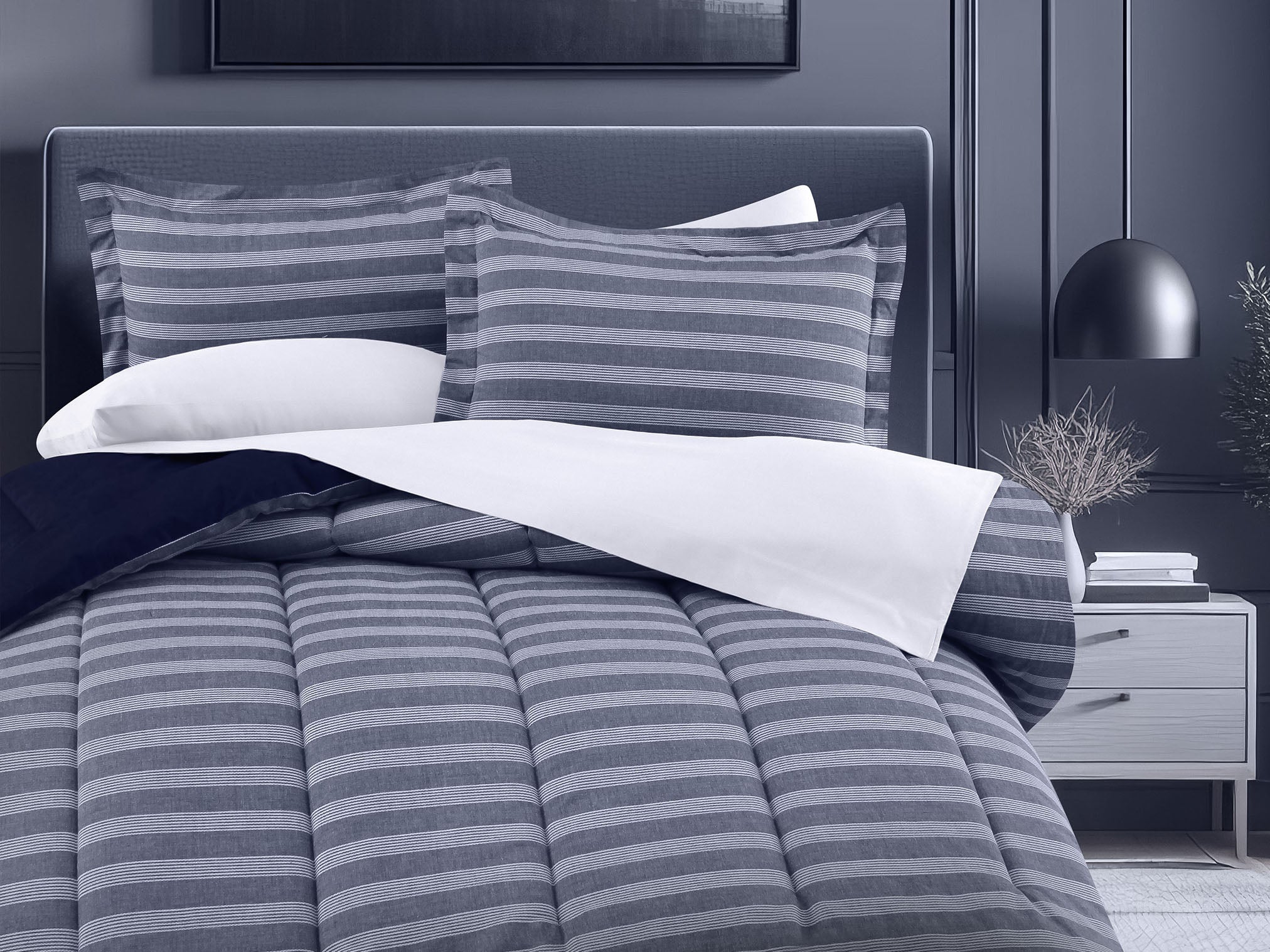 Un diseño que evoca serenidad y sofisticación: cenefas de líneas blancas, finas y delicadas, recorren un fondo jaspeado en azul profundo. Este jacquard es una obra de detalles, donde cada línea se entrelaza suavemente con el fondo, creando una textura que capta la mirada y añade profundidad. El contraste entre el blanco puro y el azul jaspeado evoca calma, recordando la quietud de un cielo estrellado sobre el océano. Perfecto para quienes buscan estilo y sutileza, este tejido transforma cualquier espacio en un rincón de elegancia discreta.