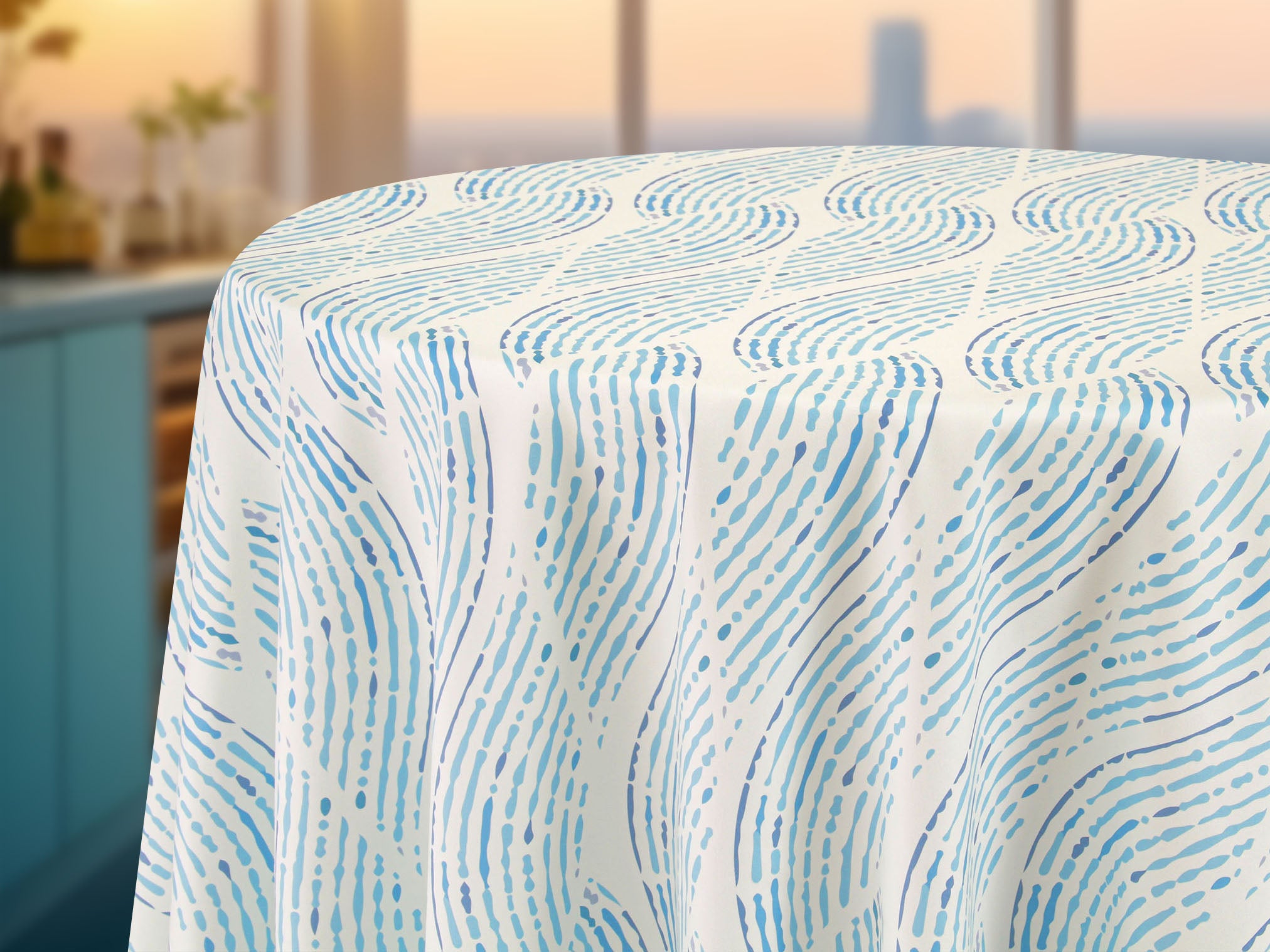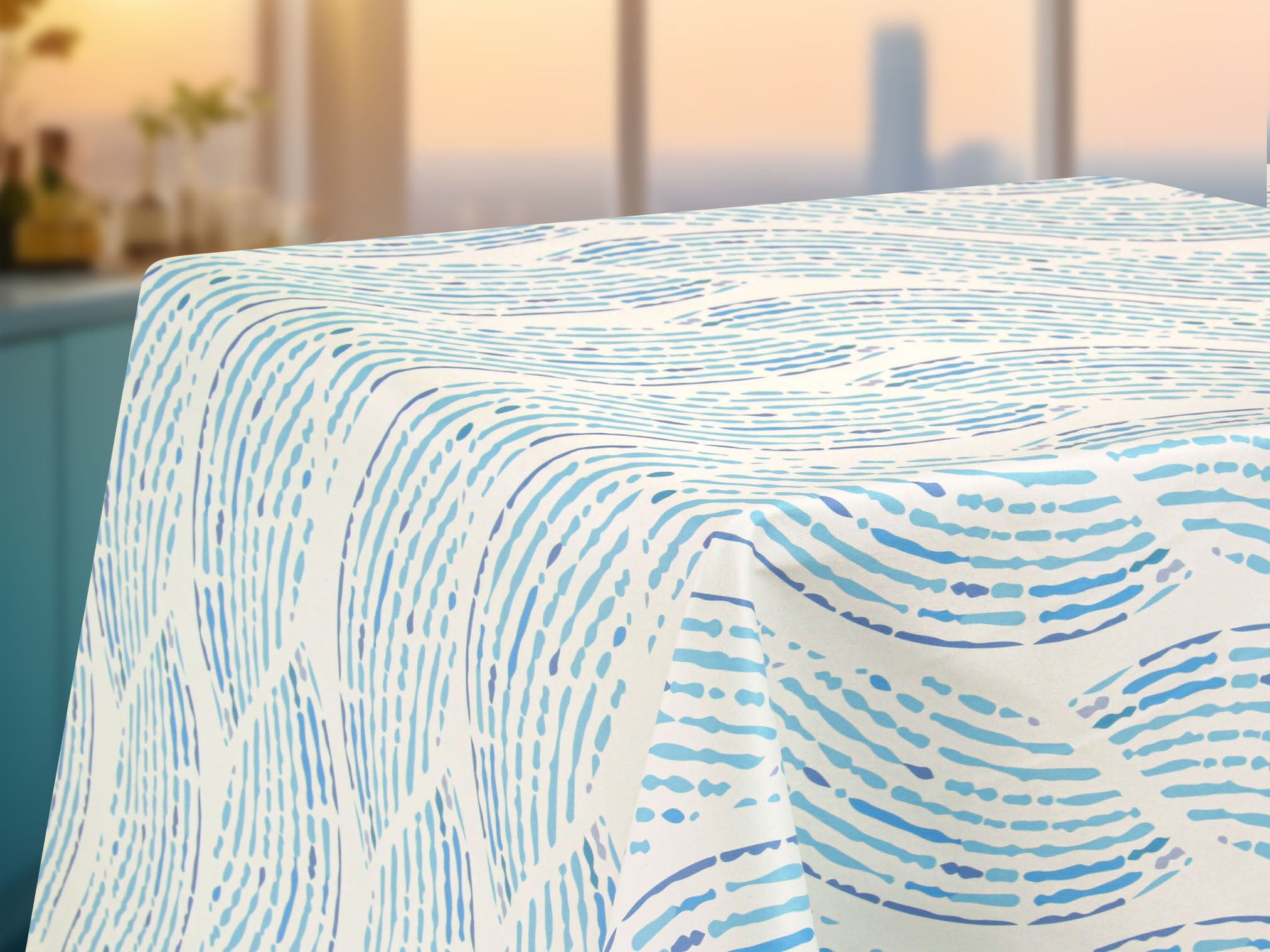 Imagina la suavidad de las olas acariciando tu mesa, mientras el mantel de patrón ondulado en tonos azules se despliega con elegancia sobre el fondo azul claro. Cada detalle de este diseño inspira serenidad y frescura, transformando cualquier comida en una experiencia única. Haz de tu hogar un lugar donde cada momento brille. Eleva tu espacio con el toque perfecto, solo aquí.