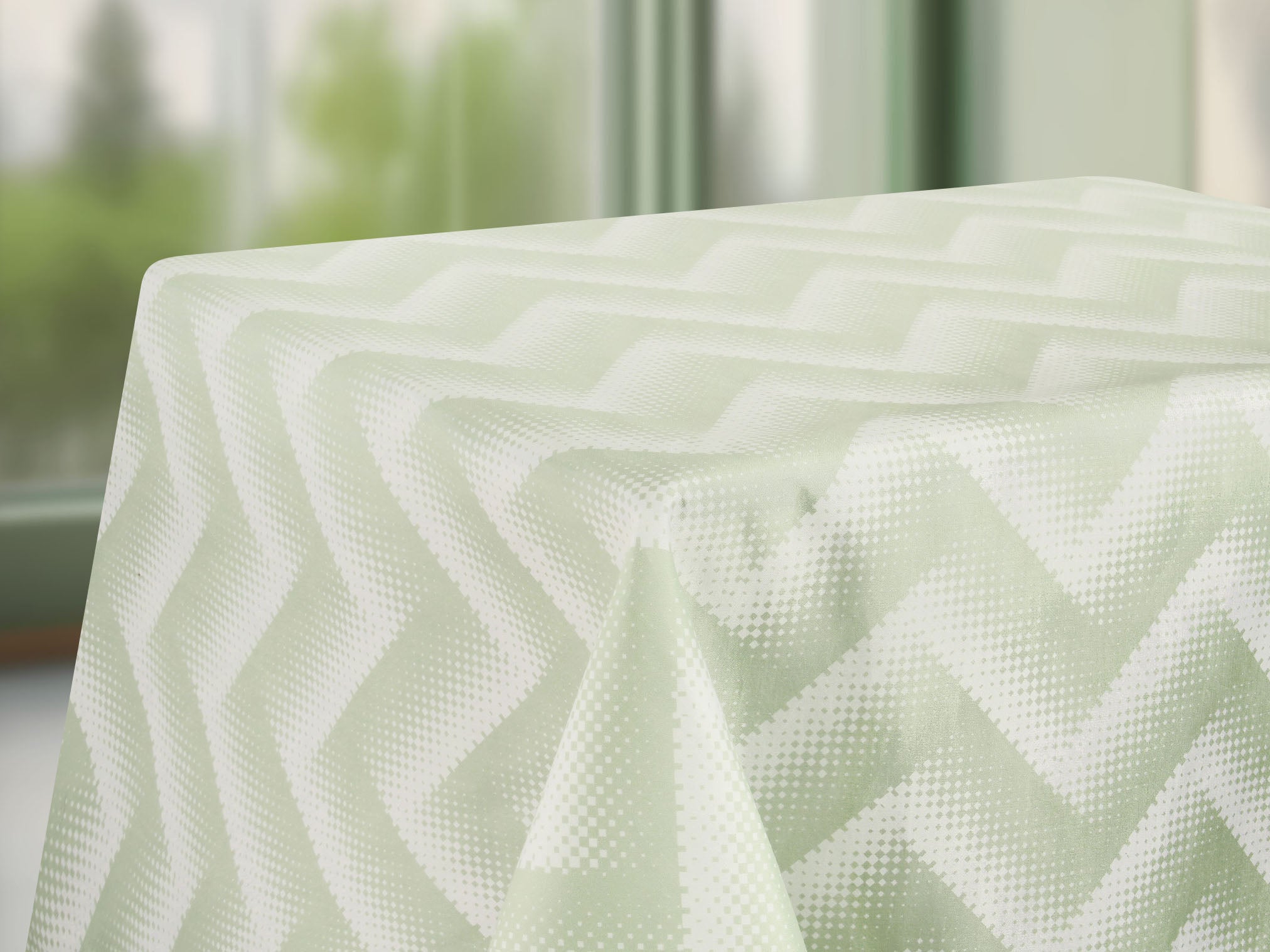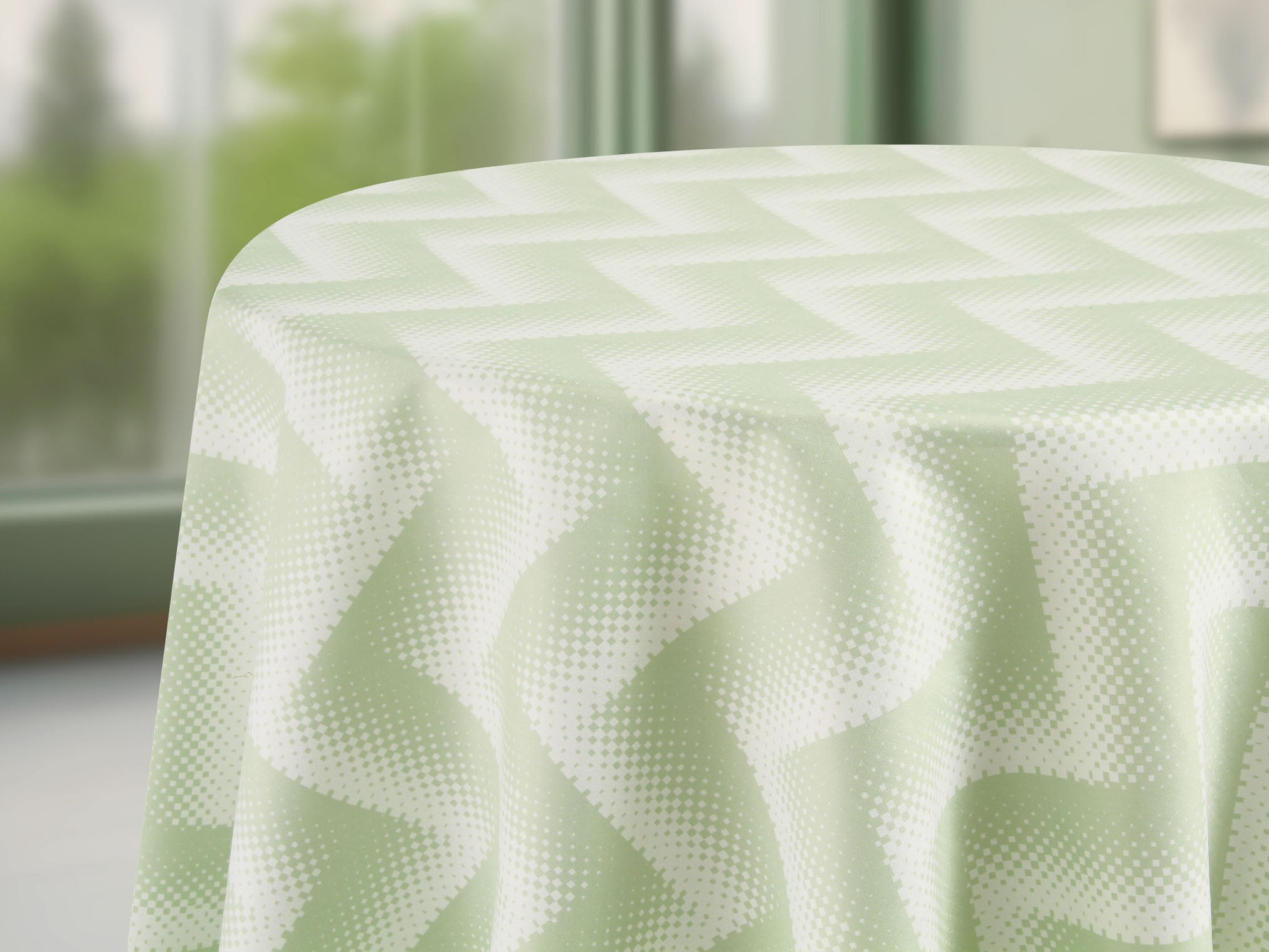 Un ritmo vibrante cobra vida en tu mesa: un patrón de píxeles en zigzag, en tono pistache, danzando sobre un fondo verde claro. Moderno, fresco, lleno de energía, este mantel transforma cada instante en un deleite visual. Dale a tu hogar un toque audaz y sofisticado, donde cada comida se convierte en una experiencia única. Renueva tu espacio hoy mismo.