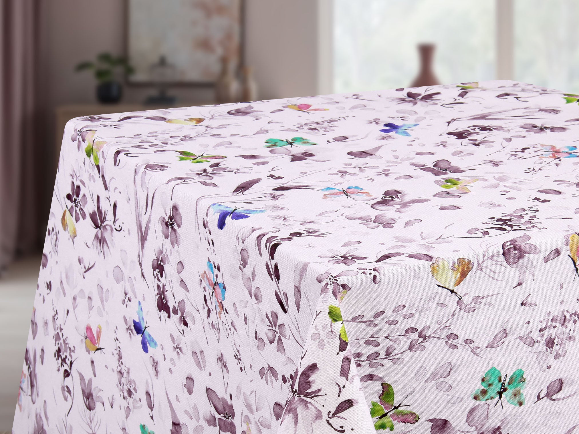 Un jardín de colores y sueños cobra vida sobre tu mesa: flores violetas acompañadas de mariposas tipo acuarela en tonos verde, azul, rosa y amarillo, sobre un fondo lila suave. Un diseño que evoca frescura, libertad y belleza natural, transformando tu espacio en un rincón lleno de armonía y estilo. Dale un toque de serenidad y alegría a tu hogar con esta pieza única y vibrante.