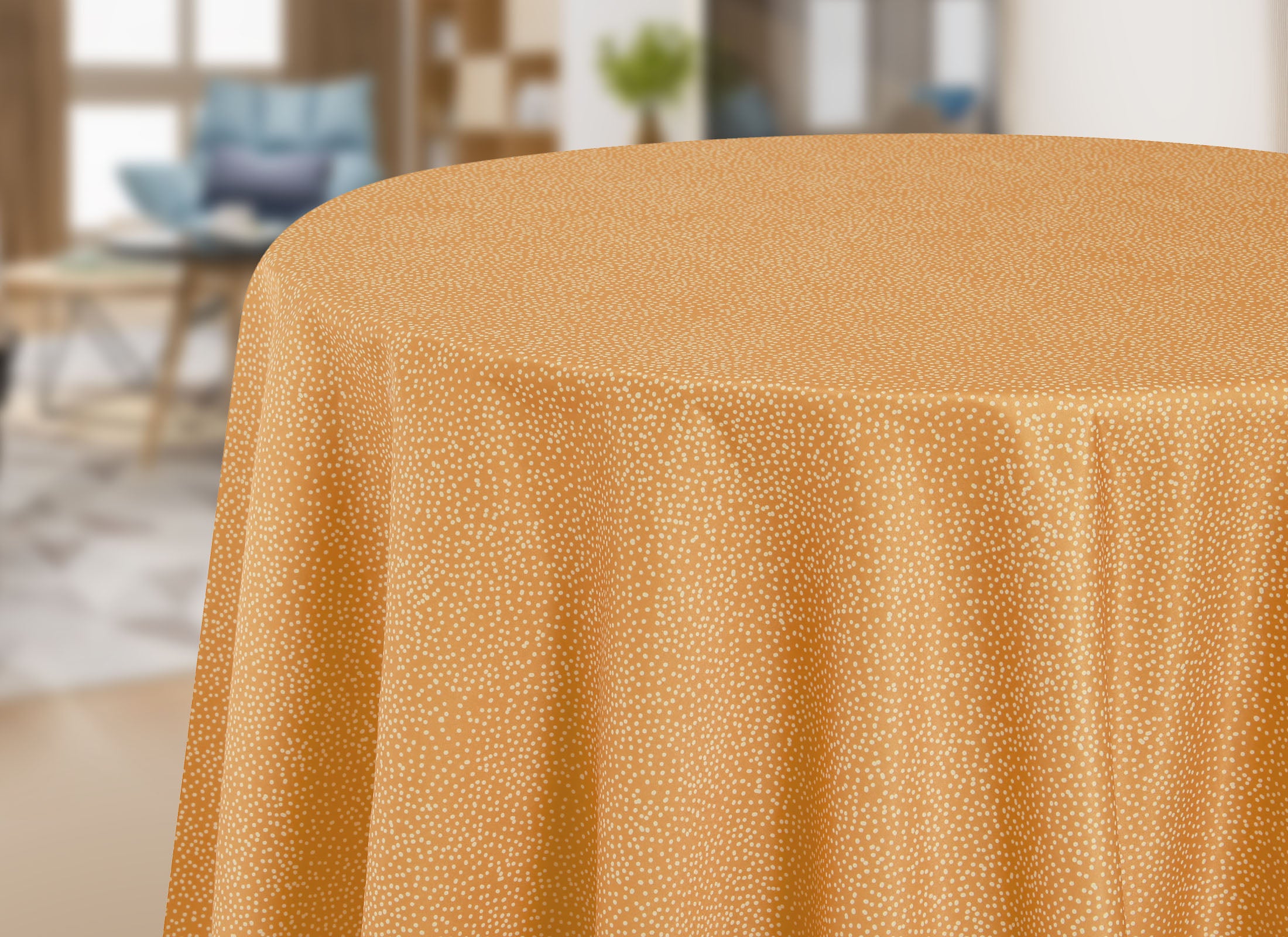 Un destello de alegría y frescura ilumina tu mesa: puntos blancos dispersos sobre un fondo amarillo, creando una vibrante y alegre armonía. Un diseño lleno de energía y calidez, perfecto para dar vida a cualquier espacio. Convierte cada momento en una celebración de luz y color, donde la simplicidad se transforma en belleza. Haz que tu hogar brille con este toque único.