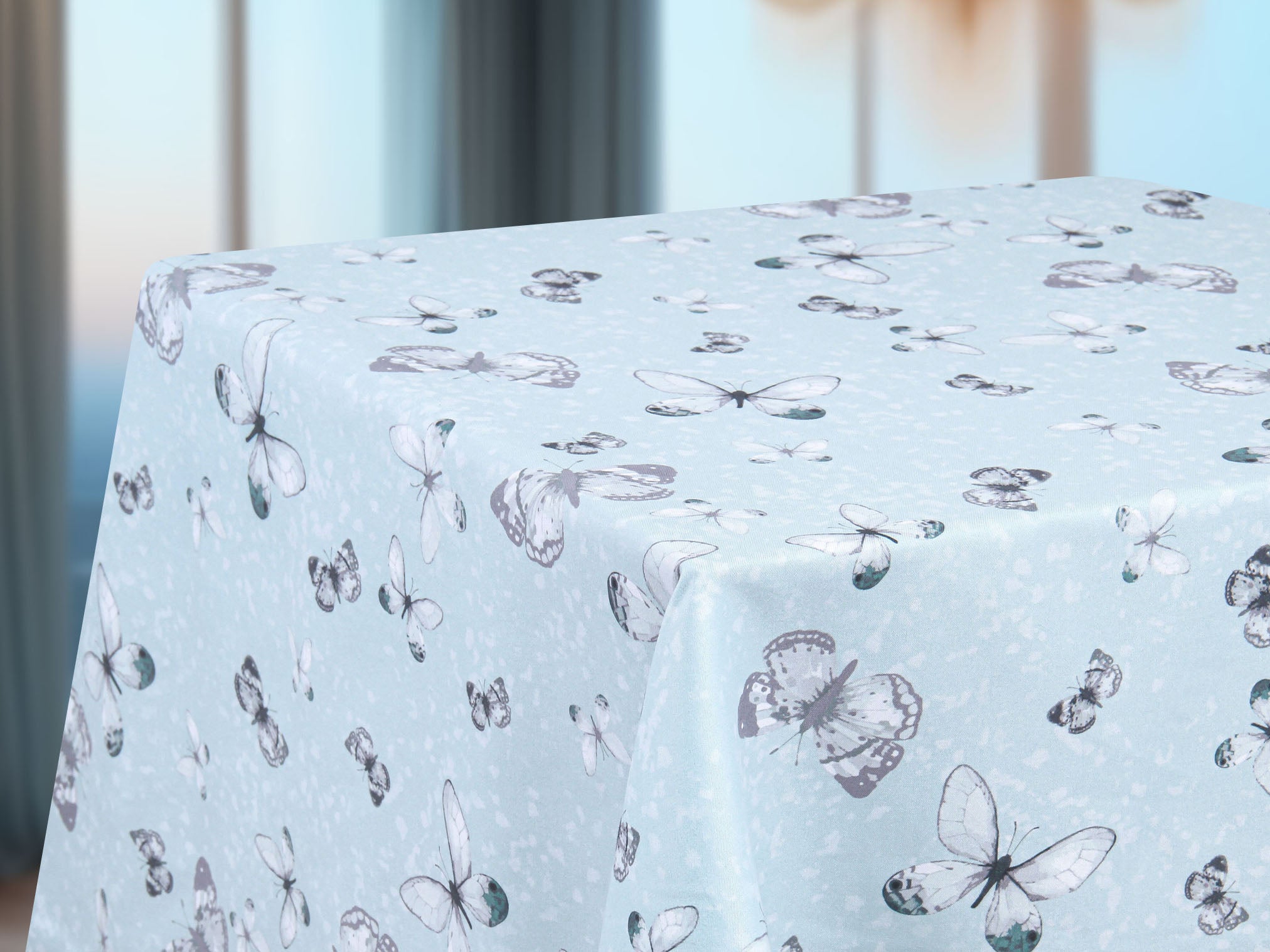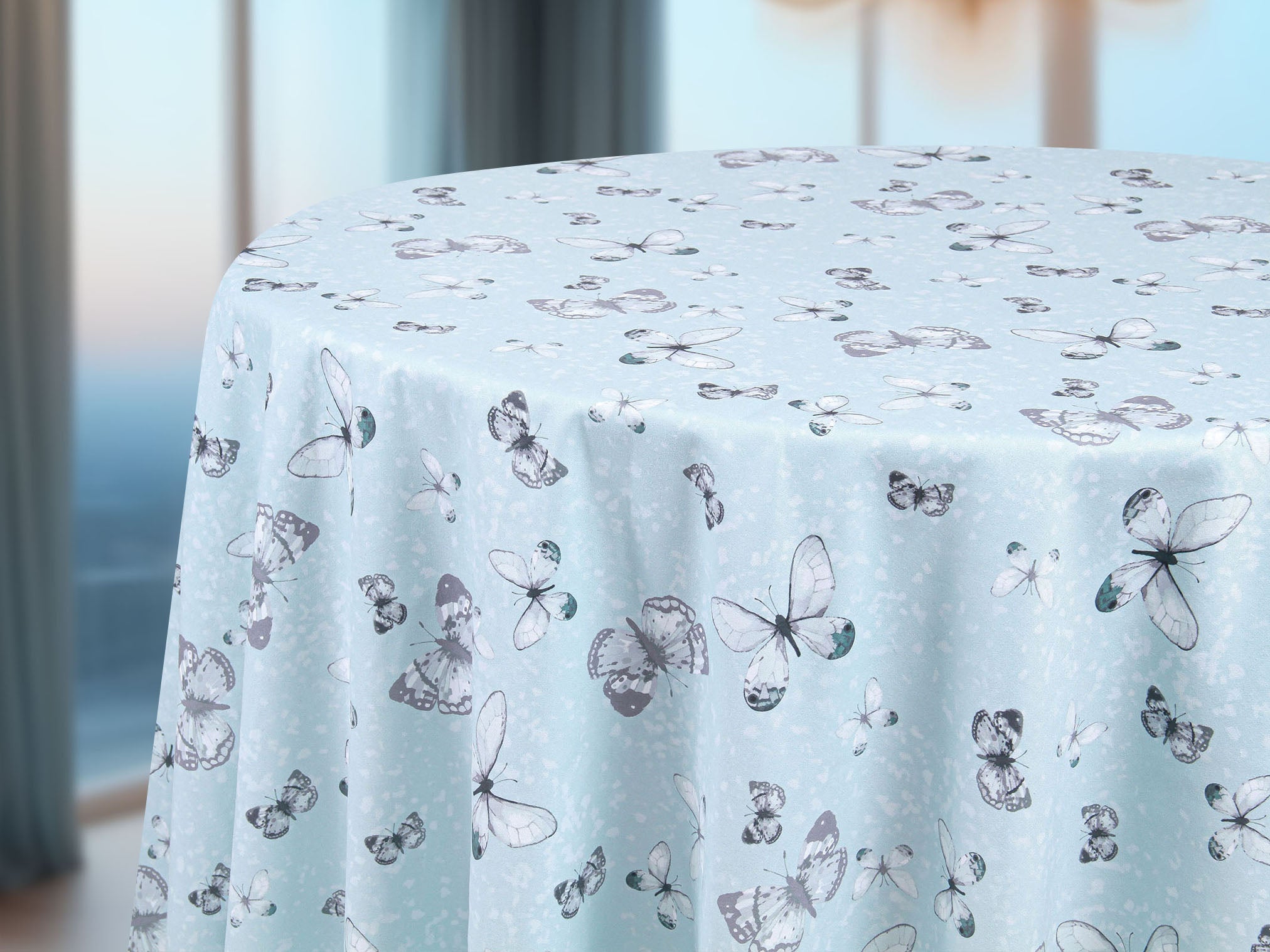 Delicadas mariposas revolotean en un baile sutil, sus alas en tonos grises y verdes posándose con gracia sobre un fondo verde pálido salpicado de suaves manchas gris claro. Un diseño que evoca naturaleza, ligereza y elegancia, perfecto para transformar tu mesa en un escenario de armonía. Haz de cada encuentro un momento especial, donde la belleza fluya con cada detalle. Llénalo de encanto hoy mismo.