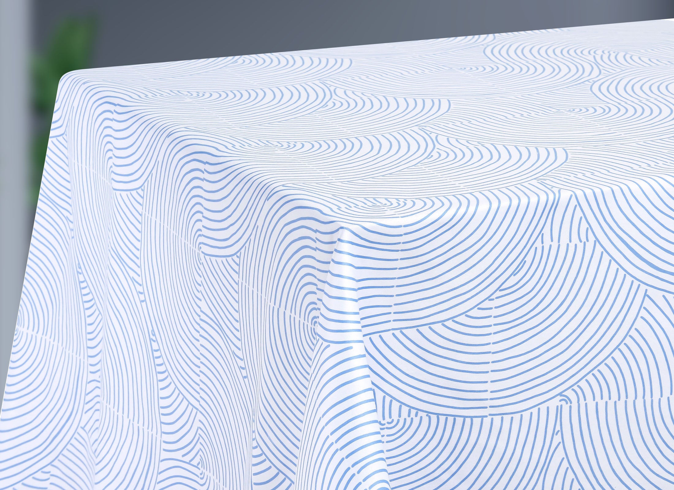Un baile de formas y fluidez se dibuja en tu mesa: arcos irregulares entrecortados en tono azul destacan con armonía sobre un fondo blanco, evocando frescura y elegancia. Un diseño que combina modernidad y sutileza, perfecto para transformar cada encuentro en un momento especial. Deja que la serenidad del azul y la pureza del blanco eleven tu espacio con estilo y distinción.