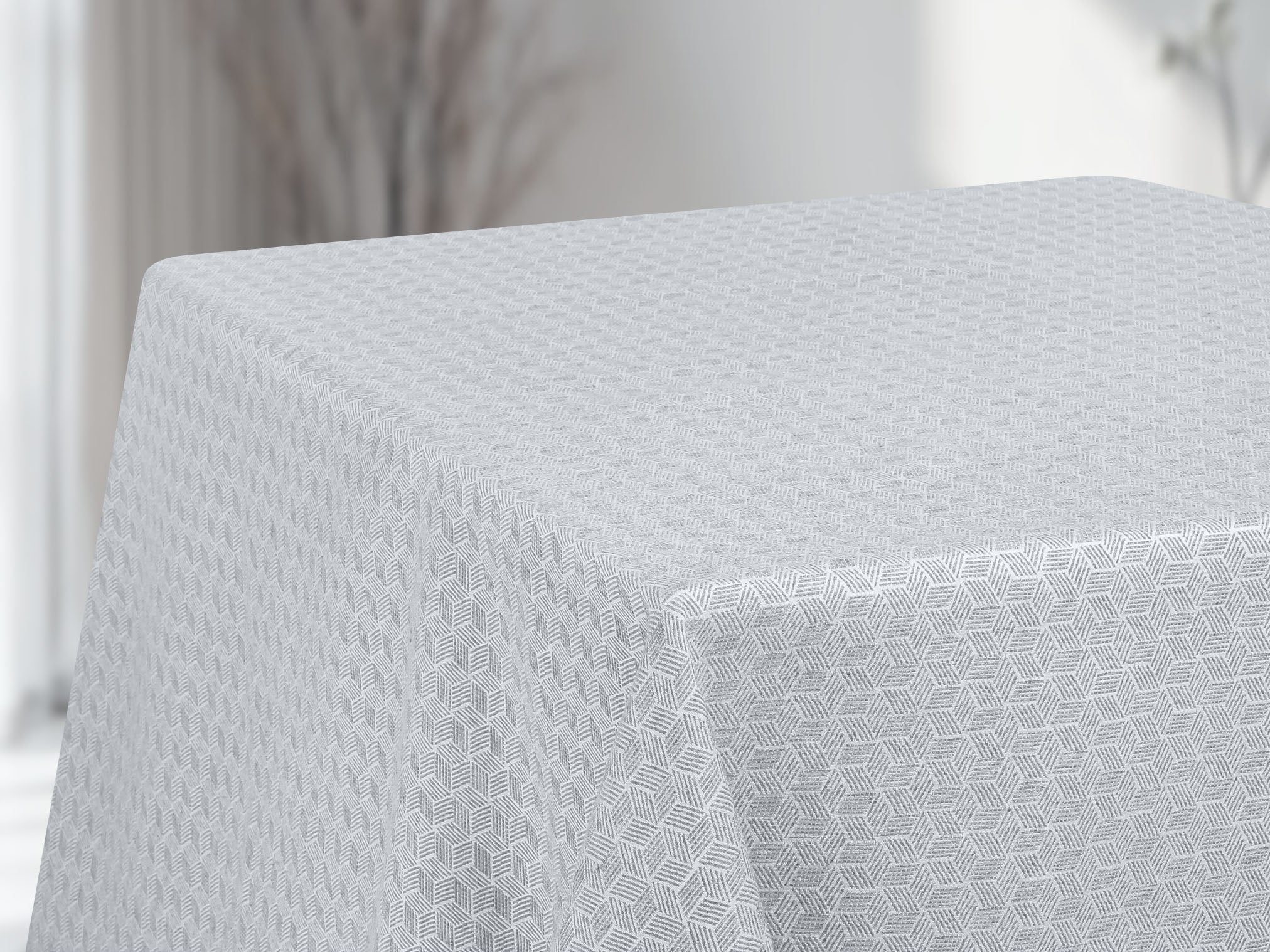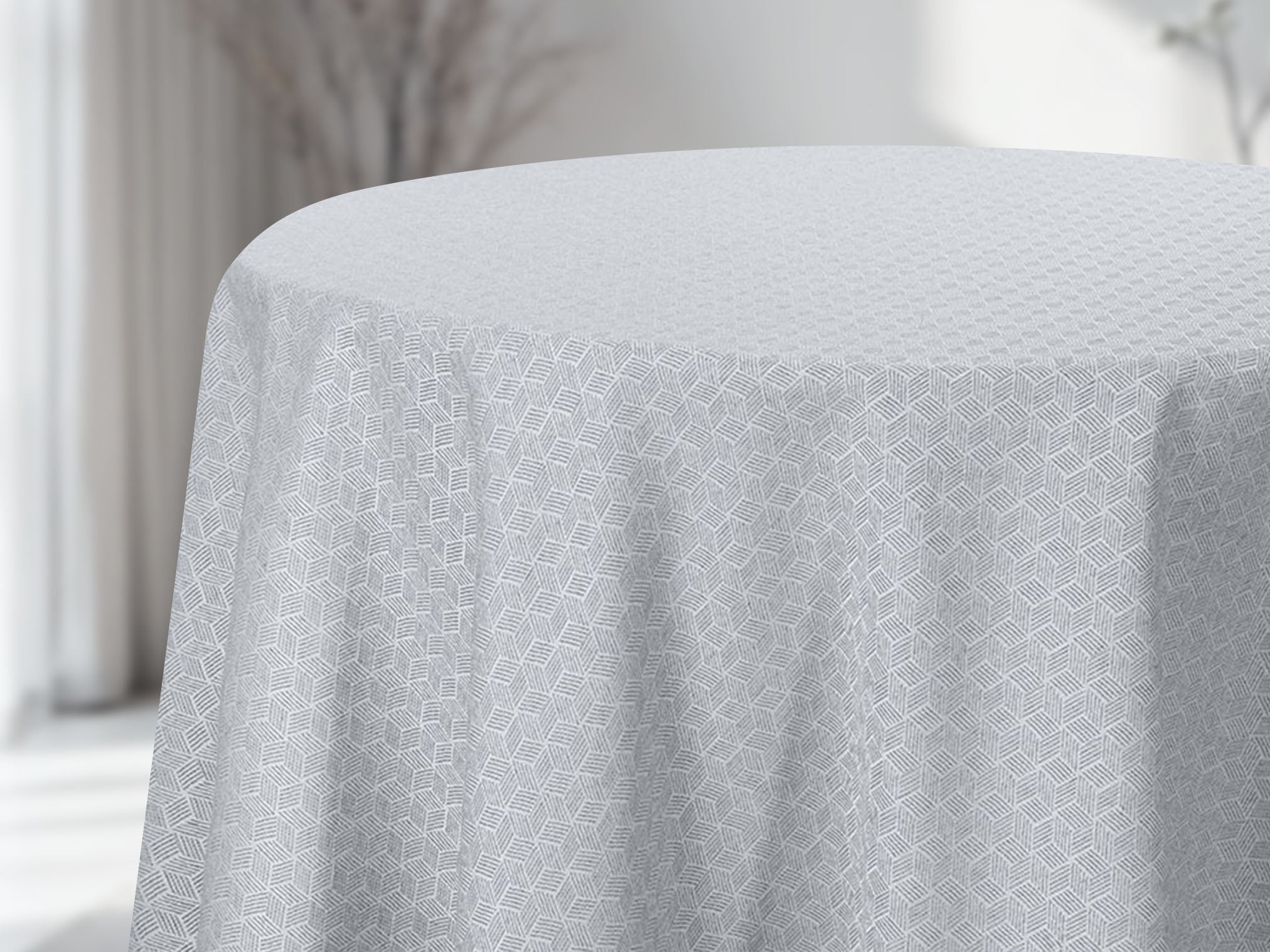 Un diseño sofisticado y lleno de textura se despliega en tu mesa: jacquard de cubos, adornado con pequeñas líneas grises que crean una sutil textura, sobre un fondo blanco puro. Un patrón que combina elegancia y modernidad, añadiendo profundidad y distinción a tu espacio. Convierte tu hogar en un lugar de estilo refinado y detalle con esta pieza única y encantadora.