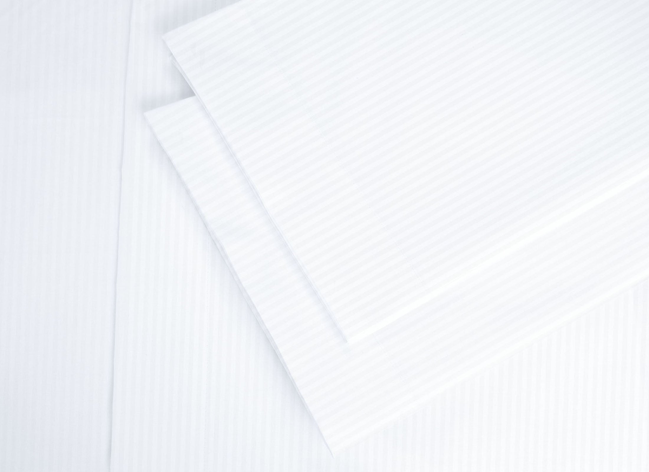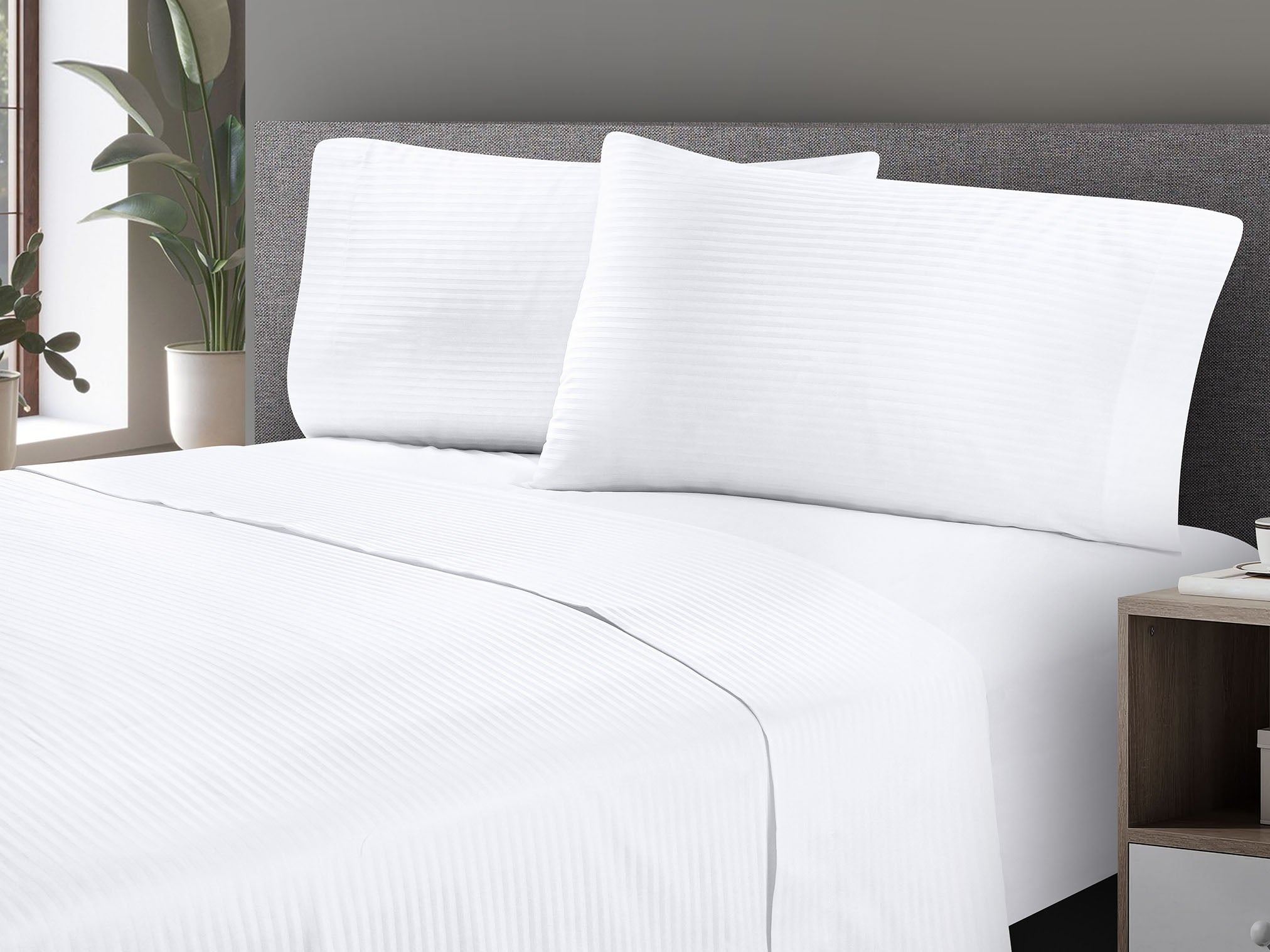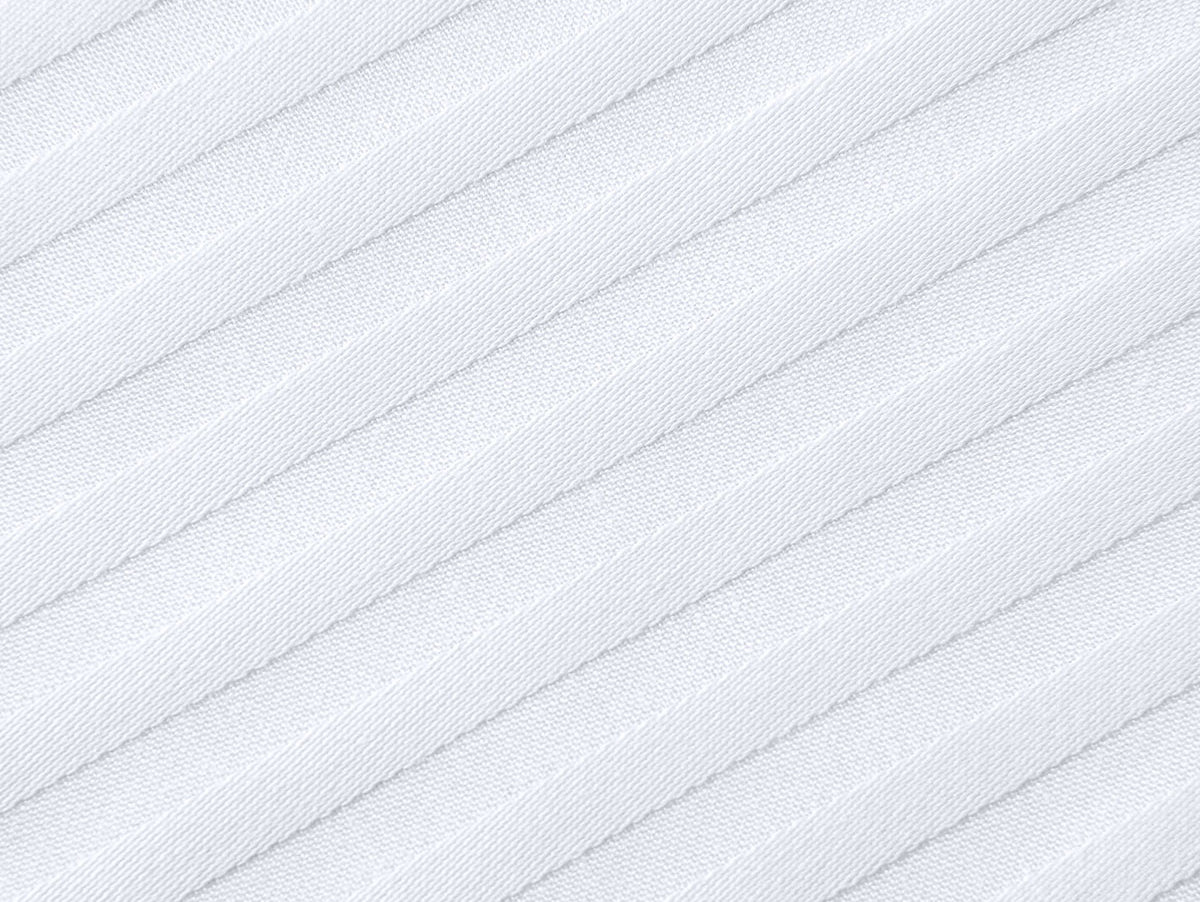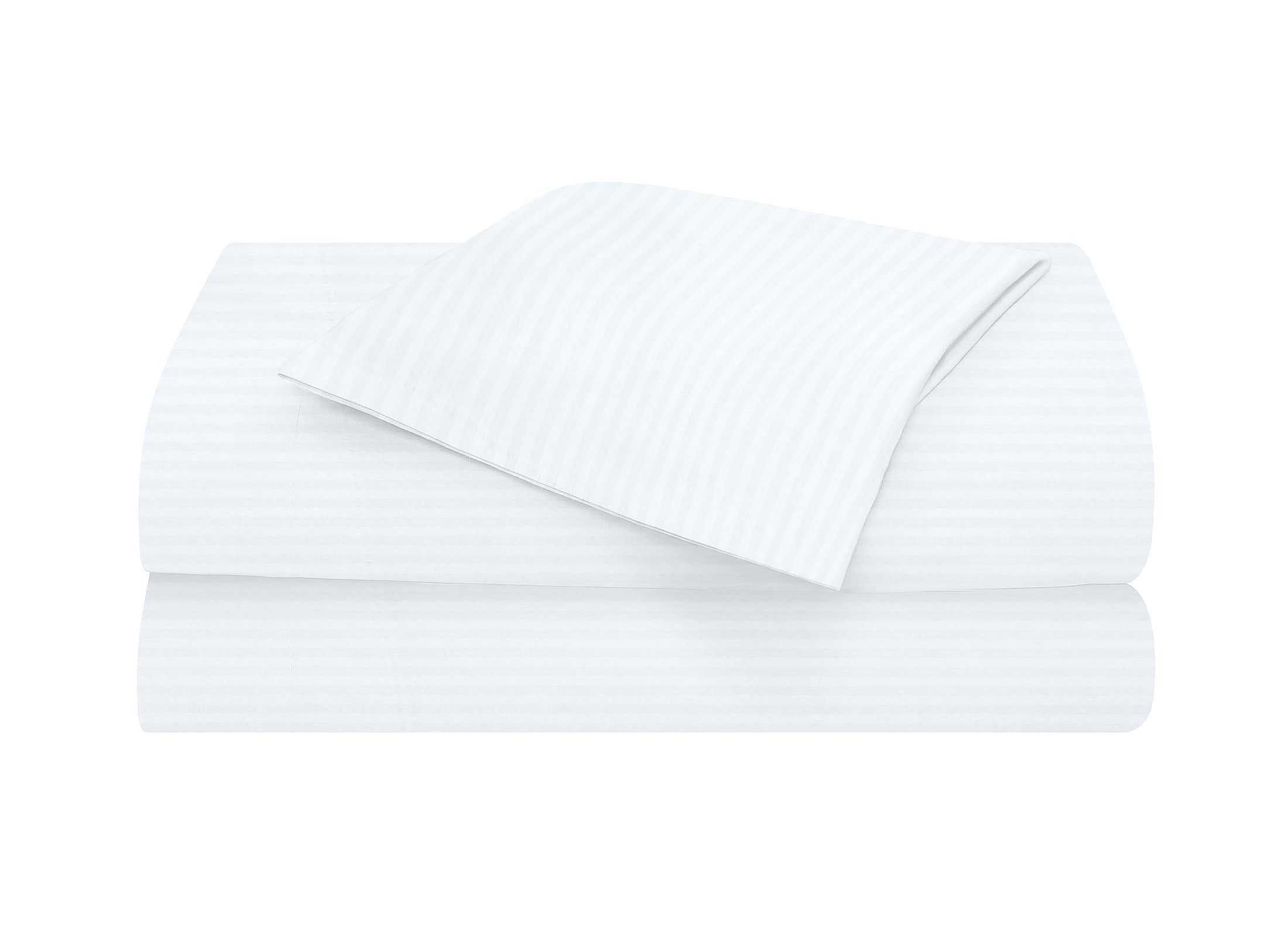 La sábana encimera y las fundas de almohada son confeccionadas en una mezcla de fibras 50% algodón y 50% poliéster en tejido de percal de 200 hilos, su delicada raya horizontal de 6 mm aporta una textura suave y un diseño moderno, mientras que la sábana bajera se elabora en tejido percal liso de 220 hilos, brindando una experiencia de descanso que combina elegancia, suavidad y frescura que armoniza tu espacio, invitándote a un descanso profundo y lleno de confort.
