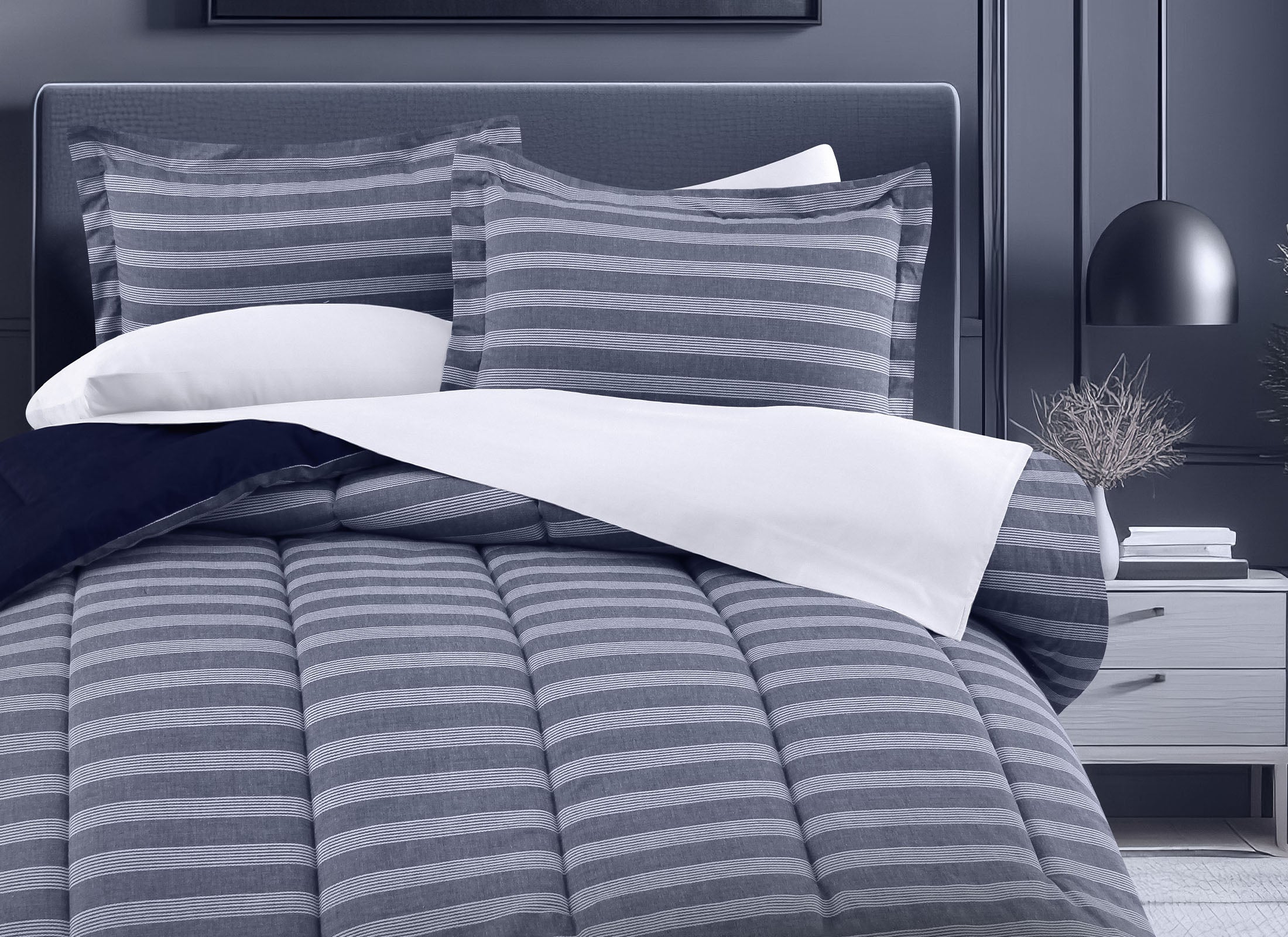 Un diseño que evoca serenidad y sofisticación: cenefas de líneas blancas, finas y delicadas, recorren un fondo jaspeado en azul profundo. Este jacquard es una obra de detalles, donde cada línea se entrelaza suavemente con el fondo, creando una textura que capta la mirada y añade profundidad. El contraste entre el blanco puro y el azul jaspeado evoca calma, recordando la quietud de un cielo estrellado sobre el océano. Perfecto para quienes buscan estilo y sutileza, este tejido transforma cualquier espacio en un rincón de elegancia discreta.