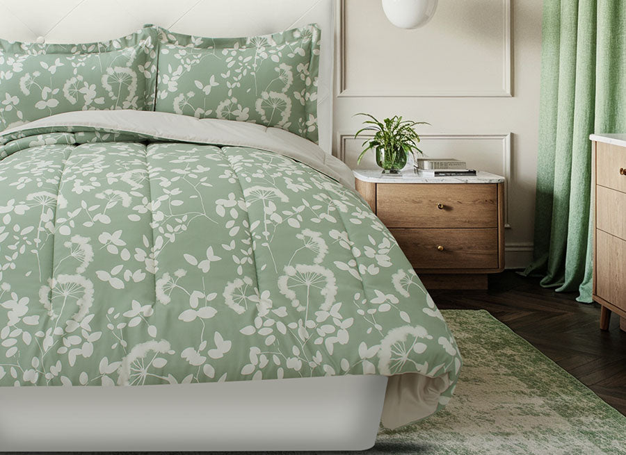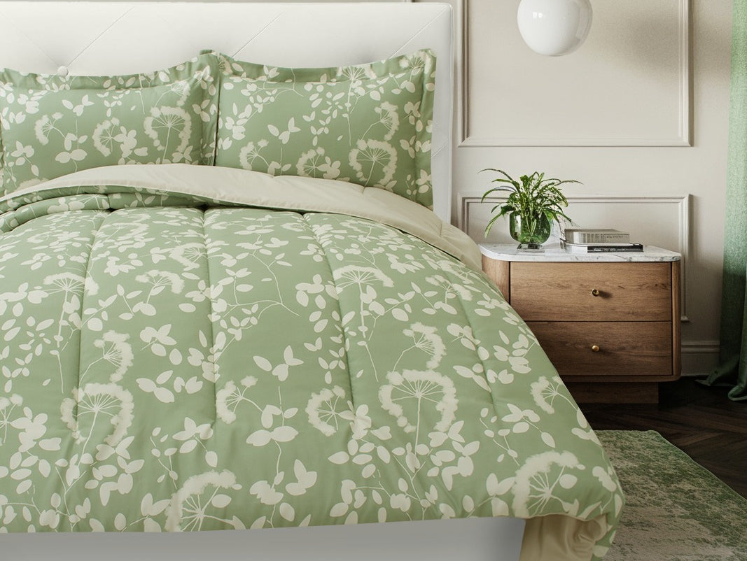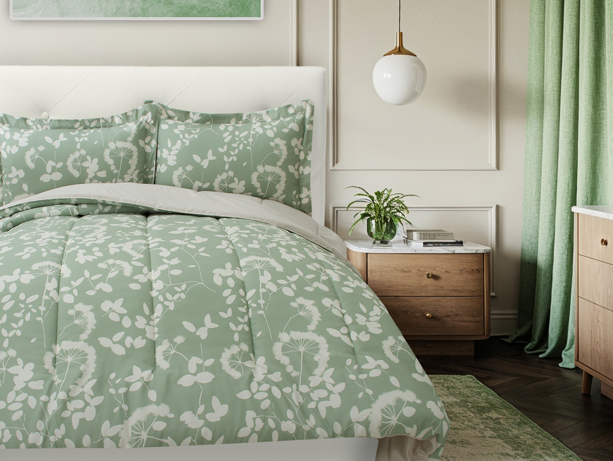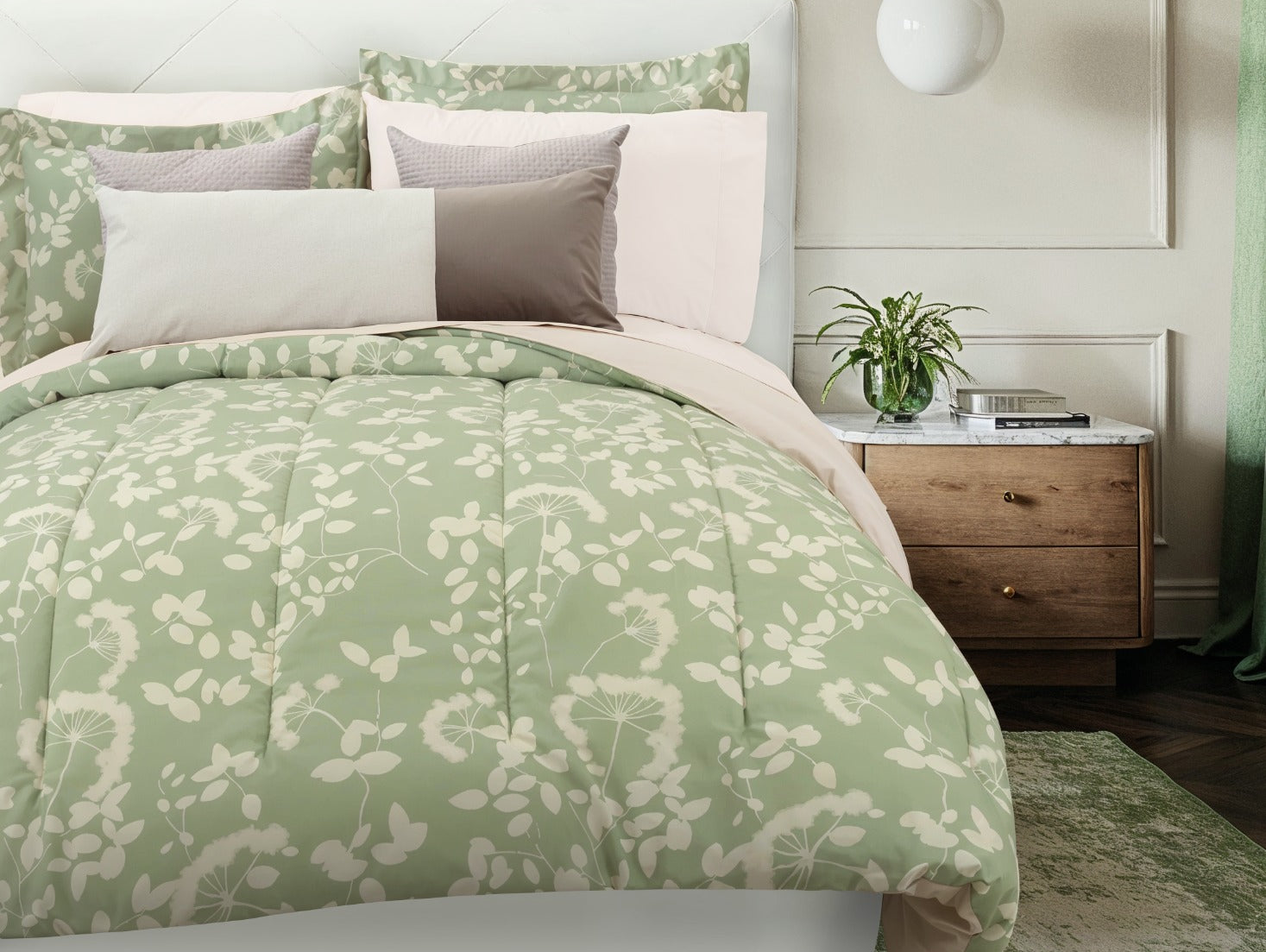 • Enfoque: Perfecto para quienes buscan un estilo natural y sereno en su recámara, combinando diseño, confort y delicadeza en un edredón.