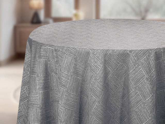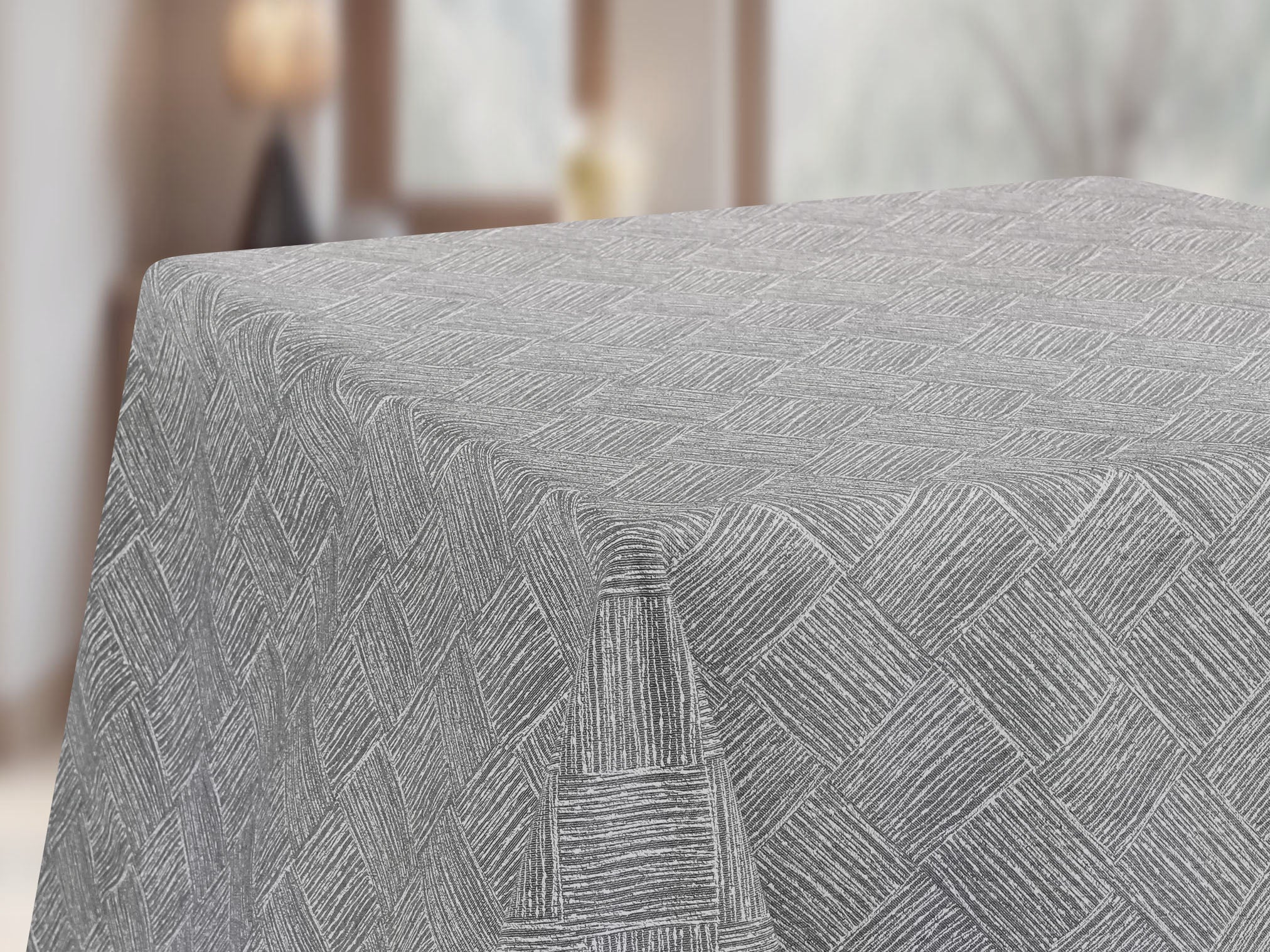 Un toque de sofisticación y elegancia se revela en tu mesa: jacquard de textura tipo entramado de delgadas líneas blancas, sobre un fondo gris suave. Un diseño que aporta profundidad y serenidad, fusionando lo clásico con lo moderno. Dale a tu hogar una atmósfera refinada y atemporal, donde cada detalle refleja buen gusto y estilo único.