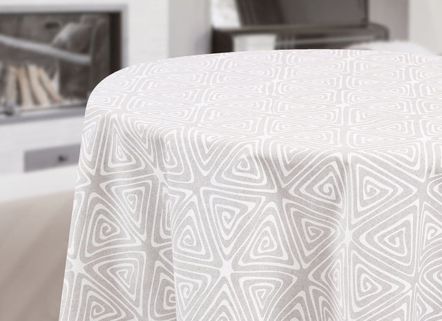 Un juego de líneas precisas y elegantes se despliega en tu mesa: líneas blancas que forman triángulos sobre un fondo gris, creando un patrón moderno y sofisticado. La simplicidad de las formas y la profundidad del gris ofrecen un toque de elegancia minimalista. Transforma tu espacio con este diseño que evoca armonía y estilo atemporal. Dale un aire contemporáneo a tu hogar hoy mismo.